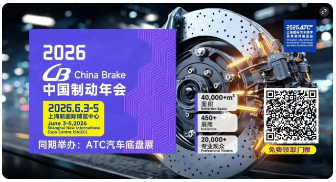 智能电动化浪潮下,制动系统正从安全兜底迈向智驾核心,线控、轻量化、欧七排放、EMB量产等成为产业破局关键。2026ChinaBrake中国制动年会,作为全球三大汽车制动技术会议之一,展示面积超20,000㎡,汇聚450+行业优质展商,吸引20,000+专业观众,以“会+展”创新形态,于6月3-5日登陆上海新国际博览中心(浦东新区龙阳路2345